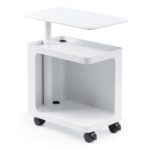 サンワダイレクト デスクキャビネット 天板昇降/回転機能付き 50~72cm ガス圧式 キャスター付き ポータブル電源収納 台 デスクワゴン ホワイト 100-SNW027W