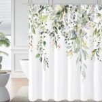 シャワーカーテン 180幅*180cm丈 防カビ防水 お風呂カーテン ユニットバス 浴室 間仕切り 速乾 厚手 高級ポリエステル生地 緑の葉植物 目隠しカーテン 洗濯可能 リング付き (グリーン)