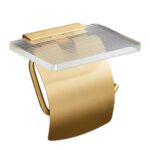 トイレットペーパーホルダー おしゃれ 収納 飾り棚 お手洗い トイレ用品 モダン シンプル DIY 棚付き 補充楽 小物置き 簡単設置 (ゴールド)