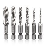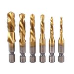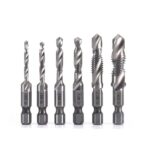 ドリルタップ 超硬ドリルビット 六角軸 6本セット チタン-ゴールド 面取りタップ 多機能 穴あけ ねじ切り タップ スパイラル HSS 高速度鋼 M3 M4 M5 M6 M8 M10 タップドリルセット (シルバー)