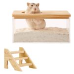 ハムスターの砂浴室 ステップ付き ハムスター トイレ 透明 ハムスター 砂浴び容器 蓋付き ハリネズミ しやすい 飛び散り防止 風呂 洗面所 遊び場 モルモット
