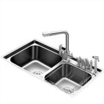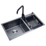 バス備品 キッチンリフォームシンク キッチンクリーニングプールクリーニング野菜シンク洗濯フルーツシンクキッチン大型プールブラックシンクレストランシンクダブルボウル (Color : Black, Size : 75cm)
