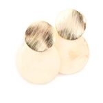 バックキャッチ ピアス べっ甲風 ラウンド プレート レディース 女性用 シンプル マット加工 つや消し 板 円盤 まる 丸 円形 イヤアクセ (ホワイト)
