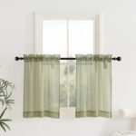 バランス シアーカーテン 24インチ ロング セミシアー スモール カーテン リビングルーム ベッドルーム用 ロッドポケット ウィンドウトリートメント カバー キッチンキャビネット用、幅73.7 cm x 長さ61.0 cm、2パネル、オリーブグリーン