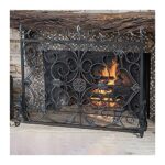 ファイヤーガード 38×31インチ シングルパネル 手作り 錬鉄 メッシュ 暖炉スクリーン ファイヤースパークガード リビングルーム 寝室の装飾 アンティーク調仕上げ