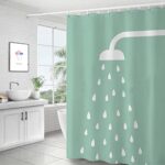 ポリエステルシャワーカーテン グリーン防水バスカーテン黄変や変形しない 厚手素材 防カビお風呂カーテン 10個リング付き シャワーヘッド模様 水滴模様 シンプル北欧風シャワー用品 お洒落バスカーテン 重り付き 引越し必備 (120*150cm)