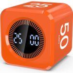 ポモドーロタイマー 5/10/25/50分プリセット付き デジタルキューブタイマー LED表示 フリップ式カウントダウン 重力センサー 静音モード USB充電式 勉強・仕事・キッチン・ADHD対応 学習タイマー (オレンジ)