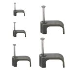 フラットグレープラスチックケーブルクリップ&固定釘 ツイン&アースサイズ10mm – クリップ100個