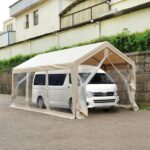 パイプ車庫 ガレージテント カーポート 3M×6M 大型 軽自動車用 開閉可能 防水加工 UVカット機能 ドア付き タープテント スチール製 頑丈 物置 駐車 仮設倉庫 透明 簡易