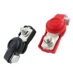 バッテリーターミナル 自動車バッテリー端子コネクタ カーバッテリー ターミナル 調整可能 電池ターミナルクリップ バッテリー端子クランプ 絶縁保護カバー付 正極負極 黒、赤 (鉄 – 銅メッキ)