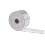 バイク用 耐熱テープ 断熱布 ファイバーガラス製 バイク用 断熱シート タービン保護 煙突熱対策 やけど予防 吸音 保冷 車断熱材 自動車 バイク マフラーに適用 1.5mm*50mm*5m (シルバー)