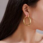 14Kゴールドプレートイヤリング 女性用 トレンディ – 分厚い軽量925スターリングシルバーポストゴールド 40/50/60mm フープイヤリング、低刺激性で変色しないイヤリング、女性へのパーソナライズされた誕生日プレゼントジュエリー。, Gold-60MM, 真鍮, 宝石なし