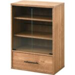 ワイエムワールド キャビネット 本棚 ガラス扉 引き出し付き 木製 セピアナチュラル 00-HN-GCAB-D