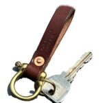 レザークラフト:真鍮シャックル本革レザーキーホルダー小(ブラウン)