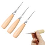 千枚通し 目打ち 手芸 3点セット 木製ハンドル レザークラフト 革工具セット 革パンチングツール 穴あけ 縫製裁縫道具 手縫い レザーツール DIY 手作り 家庭 初心者用