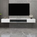 壁掛けテレビコンソール壁掛け式のフローティングテレビスタンドフロートテレビボードしろいフローティングテレビコンソール木製のフローティングテレビキャビネットロックプレートがらのリビング用壁掛けキャビネット寝室用の狭い収納棚。(White,180x23x20.4CM/70.9×9.1x8IN)