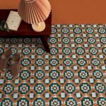 壁紙屋本舗 クッションフロア 置くだけ シールタイプ フロアシート タイル レトロポップ 昭和レトロ オレンジ 176cm×88cm レトロトレ CRT-BM01【受注生産品・キャンセル不可】