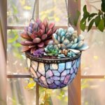 多肉植物 プランター アクリル サンキャッチャー 吊り下げ 18.04cm ウィンドウ装飾 ステンドグラススタイルデザイン レインボーメーカー ウォールアート ギフトアイデア ガーデンオーナメント 屋内屋外使用/ZW-06