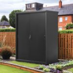 大型屋外収納庫 防水耐候性 頑丈スチール製 鍵付き物置 ガーデン収納 農作業用具保管 調整可能棚板 転倒防止設計 ブラック