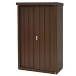 大型屋外物置 防水 耐候性 収納庫 引き戸タイプ 鍵付き 可動棚付き ガーデン収納 農業資材保管 防錆処理 転倒防止設計 (ブラック, 123×65×154cm)