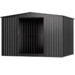 大型屋外用物置 スチール製大容量収納庫 防水耐候性強化 頑丈設計 引き戸両開きタイプ 換気口付き ガーデン農場ツール収納対応 床なし構造