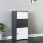 宅配ボックス 置き型 スタンドポスト かご付き 配達ボックス 鍵付き メ一ル便・A4対応 一戸建て用 メールボックス 新聞受け 棚付き (ダークグレー)