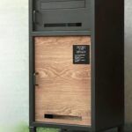 宅配ボックス 木目調 ポスト付き 一戸建て用 大容量 89L ダイヤル錠 配達ボックス 一体型 置き型 一体型ポスト 自宅用 置き配 防水 印鑑 盗難防止 ワイヤー 屋外 モルタルグレー×ブラック [並行輸入品]