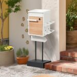 宅配ボックス ポスト 置き型 スタンドポスト 傘立て付き 大型 郵便受け 郵便ポスト 置き配 おしゃれ レトロ 一戸建て用 大容量 北欧 アンティーク 脚付き 収納 メールボックス A4対応 新聞受け 高級 防水カバー付き 防錆スチール製 (Beige)