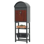 宅配ボックス 置き型 郵便 ポスト スタンドポスト【防潮・防錆処理金属表面 x 防水・雨除けフラップ】かご付き・棚付き|鍵付き A4対応 屋外 北欧 木目調 郵便受け メールボックス ダークグレー