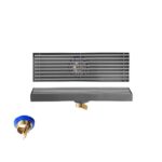 排水溝 床ドレン ステンレススチール製床排水器具 快速排水 防錆脱 悪臭防止 長方形 リニア設計、ロング形状、304ステンレス、防臭性、総銅芯、トイレ、浴室、大排気量、 竹列スタイルカバー つや消し加工 お風呂排水口 家庭用 商業用 (銃灰色側部排水,80cm)