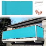 日よけ バルコニーシェード 90 x 460 cm Uvカット 風通しも良い家 窓 ベランダ 快適空間 シェード プライバシー オーニング 目隠し遮熱ネット 結束バンド 付属 屋外・庭先・ベランダ用 ・廊下・庭下・デッキ, ブルー