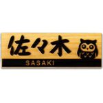 日本製ひのき 表札 プレート 浮き彫り 桧 マンション 木製 玄関 刻印 おしゃれ シンプル 会社 和風 モダン ねこ ふくろう ポスト ロッカー 人気 (J.ふくろう(漢字+英字))