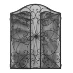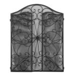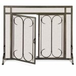 暖炉スクリーンガード、暖炉スクリーン ピルグリム アイアンゲート 暖炉スクリーン ドア付き – バーニッシュドブラック – 幅44インチ x 高さ33インチ 暖炉スクリーン フラット暖炉