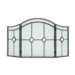 暖炉スクリーンガード、暖炉スクリーン3個折りたたみガラス暖炉スクリーン38インチ幅長方形暖炉スクリーンフラット暖炉スクリーン装飾