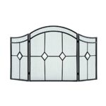 暖炉スクリーンガード、暖炉スクリーン暖炉スクリーン3パネルダイヤモンド型ガラスエスプレッソスチールヘビーデューティーメッシュ暖炉スクリーンフラット暖炉