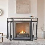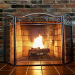 暖炉スクリーンガード、暖炉スクリーンヴィンテージ頑丈な暖炉スクリーン4つ折りヘビーデューティーメタルアイアン大型パネル安全暖炉スクリーンフラット暖炉