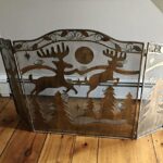 暖炉スクリーンガード、暖炉スクリーン、素朴な金属製の重厚な暖炉スクリーン、トナカイとクリスマスツリーのデザイン、9本のキャンドル付き暖炉スクリーン、フラット暖炉