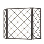 暖炉用防火スクリーン 3パネル安全メッシュカバー付き 暖炉用防火スクリーン リビングルームの薪ストーブ用火花ガード アンティークブラウン仕上げ
