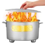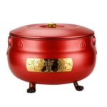焼却炉バレル – 蓋付きステンレススチールバーンバケット、ポータブルハンドル10x10x11インチ、フェスティバル儀式コンテナ、ガーデンセレモニーファイヤーボウル、シルバーゴールドバーガンディ |燃える瓦礫 木のゴミ ゴス