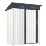 物置 屋外 スチール 倉庫 戸外収納庫 幅153*奥行き206*高181 物置き おしゃれ 大型 収納庫 防さび ベランダ 防水 ドア 引戸 スチール物置 屋外収納 ロック付き ガーデニング 庭 (ホワイト・グレ)