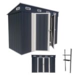 物置 屋外 スチール 倉庫 戸外収納庫 幅153*奥行き206*高181 物置き おしゃれ 大型 収納庫 屋外物置 防さび ベランダ 防水 ドア 引戸 スチール物置 屋外収納 ガーデニング 庭 (可動棚なし・ダークグレー)