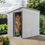 物置 屋外 スチール 倉庫 戸外収納庫 幅153*奥行き206*高181 物置き おしゃれ 大型 収納庫 防さび ベランダ 防水 ドア 引戸 スチール物置 屋外収納 ロック付き ガーデニング 庭 (ホワイトグレー+可動棚付き)