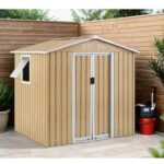 物置 屋外 スチール製 幅194×奥行162×高さ184cm 床材補強フレーム付き 引き戸 両開き 可動棚 すべり出し窓 換気口付き 防水 防錆 屋外収納庫 倉庫 ベランダ 庭 ガーデニング 大型収納 組立式 (ナチュラル)
