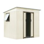 物置 屋外 スチール製 幅194×奥行162×高さ184cm 床材補強フレーム付き 引き戸 両開き 可動棚 すべり出し窓 換気口付き 防水 防錆 屋外収納庫 倉庫 ベランダ 庭 ガーデニング 大型収納 組立式 (ホワイト)