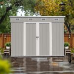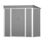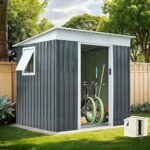物置 屋外 中型 | 省スペース引き戸 & 床材補強フレーム付 | タイヤ 自転車収納 頑丈なスチール倉庫 窓付き (グレー)