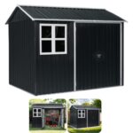 物置 屋外 スチール製 倉庫 両開きドア 施錠対応 戸外収納庫 8888L 窓付 物置き おしゃれ 大型 収納庫 屋外物置 換気口付き 防さび ベランダ 防水 雨に強い人字型屋根 ドア ガーデニング 庭 幅249*奥行き184*高194cm (グレー)