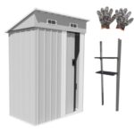 物置 屋外 スチール 倉庫 戸外収納庫 防水/耐侯【可動棚付き】収納スペース 大型 収納庫 【床材補強フレーム】棚板 屋外物置き おしゃれ 防さび ベランダ 大型 ドア スチール ガーデニング 庭 頑丈 構造工具キャンプ用品保管 ガーデン/庭/田畑/農場 頑丈 大容量 (グレーホワイト 可動棚付き 幅148*奥行き82.5*高193)