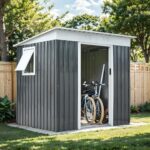 物置 屋外 高さ180cm大型倉庫 合金鋼防錆防水アウトドア収納小屋 1800L大容量屋外用 倉庫 床なし 施錠機能付き オシャレ な 物置き 園芸用品/ツール/タイヤ ガーデン/庭/田畑/メタルシェッド 可動棚付き【グレー】