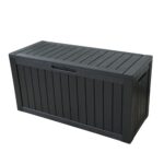 物置 屋外収納ボックス 350L 大容量 鍵付き スチール製 ゴミ箱 ストッカー 防水 防錆 ベンチ兼用 ダンパー付き ガーデニング用品 庭 キャンプ 倉庫 (Black + Steel + Modern-1)