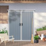 物置 屋外 樹脂製 大型 戸外収納庫 幅154*奥行き96*高174 床板付き 頑丈 大容量 サビ防止 防水 ガーデニング 庭 (グレー)